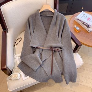 中长款收腰毛衣开衫外套女秋冬季2025大码胖高级感轻奢气质上衣