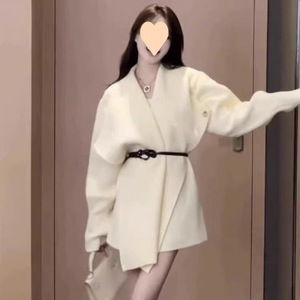 白色外套+送腰带【奶fufu慵懒毛衣/梨形身