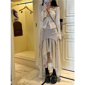 荷叶边高腰不规则半身裙女2025新款夏辣妹长裙防走光裤裙