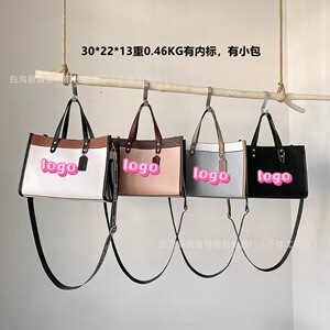 外国貿易ステッチ pu 大容量トートバッグロゴエンボス加工ファッションショルダークロスボディバッグヨーロッパとアメリカのレトロバッグ卸売女性