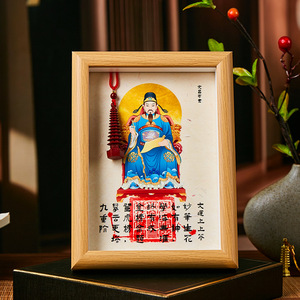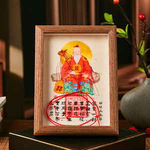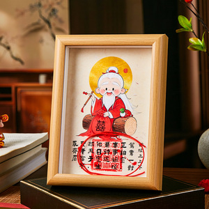 月老が赤い糸を引く文昌帝君、富の神趙公明が虎に乗って手彫りの富を呼び込む桃の花と幸運のフォトフレームの装飾品