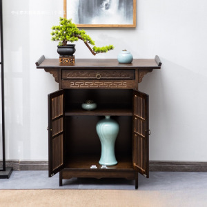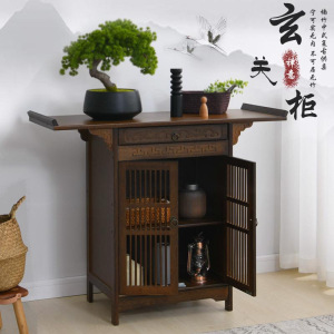 新しい中国風の玄関キャビネット、ボーグラック、装飾品ラック、禅玄関ホール、モダンでシンプルなリビングルーム、カウンターエンドビュー