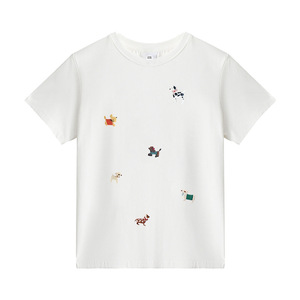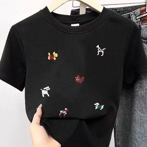 人気の漫画子犬プリント Tシャツレディース半袖右肩ラウンドネックカジュアル T2025 夏新作スリムフィットトップ