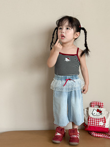 サトウキビ子供服女の子キャミソール夏薄い 2025 新しい子供の漫画ストライプトップス女の赤ちゃん服