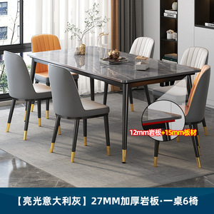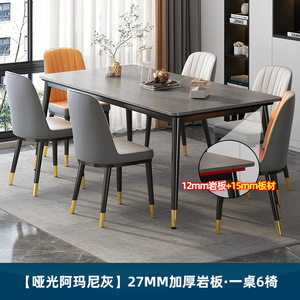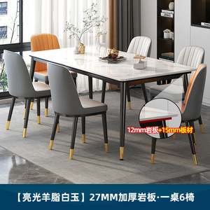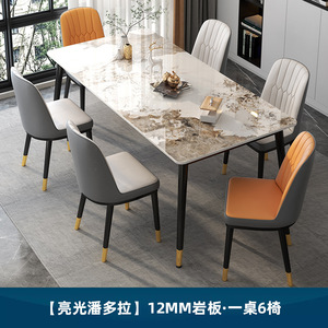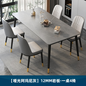 岩板餐桌小户型家用现代简约轻奢饭桌子客厅长方形餐厅餐桌椅组合