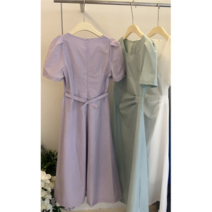 YT425339 夏ピュアリラックス着痩せパープルパフスリーブワンピース レディース