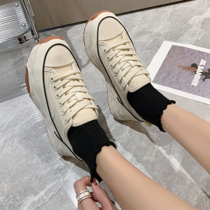 キャンバスシューズ厚底プラットフォームシューズ2024春新作スニーカー婦人靴春秋増量溶解カジュアルスポーツ白靴