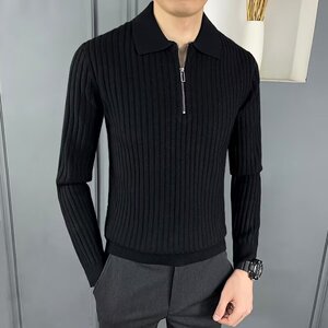 春と秋の新作ポロシャツラペル長袖セーターメンズライトスリムビジネスファッション外国貿易クロスボーダー卸売