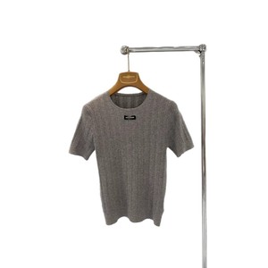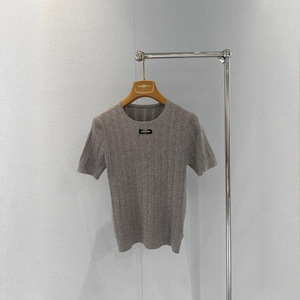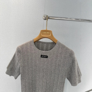 Nanyou High Version MIU Home 25 初秋新作レターロゴ装飾中空ピットストライプラウンドネックレース半袖