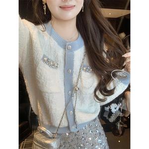 2025 Xiaoxiangfeng コントラストカラーラウンドネックセータージャケット女性の冬の新しい気質年齢軽減ルーズニットカーディガントップ