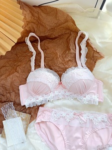 女の子の大きいサイズの下着、甘くてかわいくて快適なブラセット、アンダーワイヤー付き下着、レースの妖精風和風薄型カップ