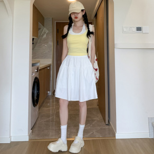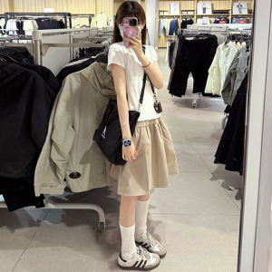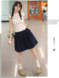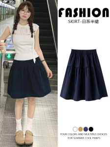 日本製ネイビーブルースカートレディース夏薄手2025新作ハイウエストスリムAラインスカート小柄5点スカート
