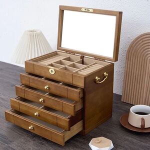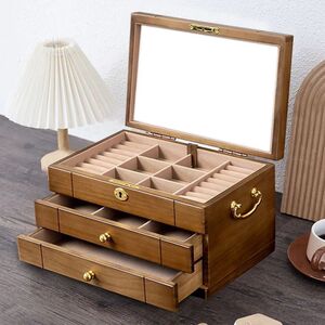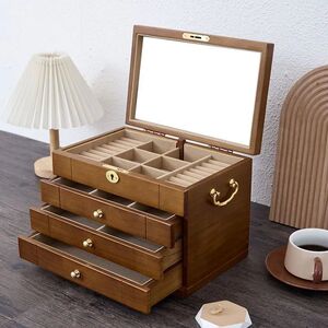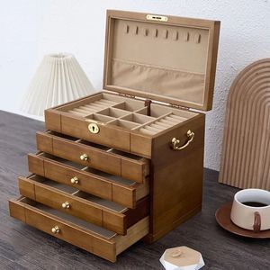 無垢材の収納ボックス、ジュエリーボックス、ネックレスジュエリー、ハイエンドの多層絶妙な大容量のイヤリング、レトロなウェディングウッド