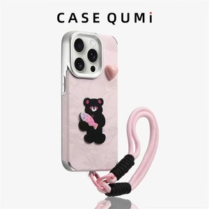 iPhone16promax Apple 15 携帯電話ケース 14 ソフト 13 に適したピンクの汚れ犬毛玉ストラップ