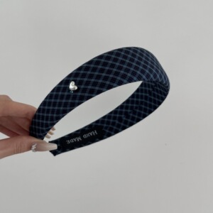 韓国のレトロなデザインのつば広チェック柄ラブヘッドバンドダークブルーのヘアアクセサリーハイエンドの多用途でスタイリッシュな女性用ヘッドバンド