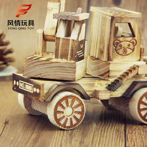 木制小型挖土机模型摆件玩具 景区地摊汽车模型玩具夜市批发