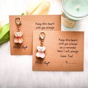 クロスボーダー Pocket Hug ポケットハグ 英語グリーティングカード かわいい立体植毛クマ キーホルダー ペンダント ギフト