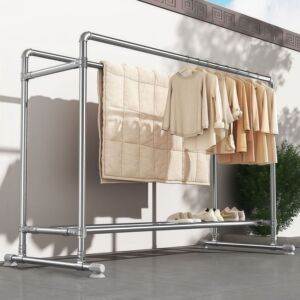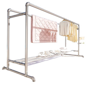 水道管物干しラック床置き家庭用バルコニー暖房パイプ物干しラック屋内外二本ロッドキルト物干しロッドワードローブ