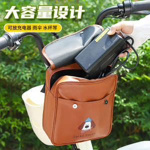 电瓶车中间前面挂包装饰摩托车防水可爱小包包电动车卡其色骑行包