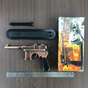 模擬合金おもちゃモデルガン発射不可クラシックノスタルジックなリボルバーモーゼルレザーケースプラスチックおもちゃの銃