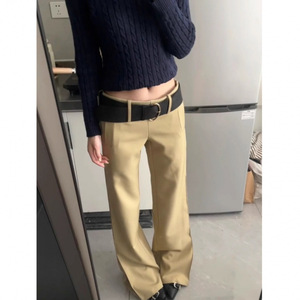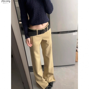 アメリカンレトロカーキミッドウエストカジュアルパンツレディース春万能マイクロフレアパンツドレープワイドレッグパンツロングパンツフロアレングスパンツ
