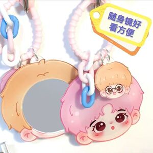 アクリルポータブルミラー DIY キーホルダー インスタイル漫画アニメーションペンダント 学生ギフト用 ポータブルミラーストラップ