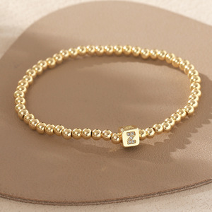 クロスボーダー TEMU ホットセールスクエア 26 文字ブレスレット光沢のある弾性ブレスレット英字象嵌ジルコンブレスレットジュエリー