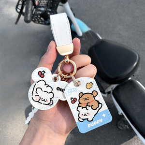 (双卡套+皮革钥匙扣)甜品线条狗