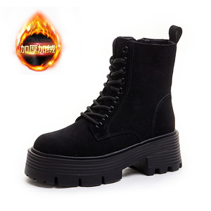 女性用厚底マーティンブーツ 2025 夏秋新作英国レースアップラウンドトゥショートブーツ女性用厚底高さ増加インターネットセレブハイキングブーツ