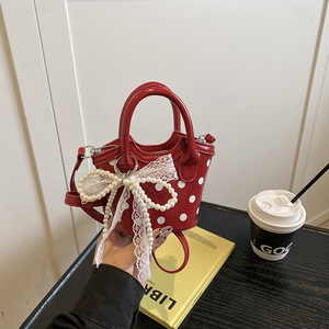 子供バッグ秋と冬の新しいレトロなオイルレザーポルカドットプリントミニハンドバッグ女の子親子クロスボディバッグ口紅バッグ