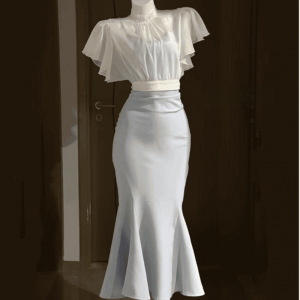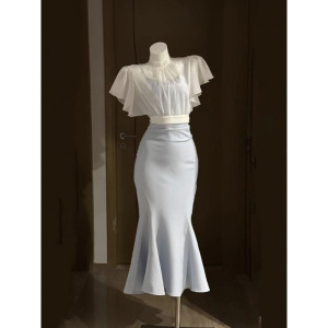 Ershang Clothing 和風クリアサスペンダーフィッシュテールスカートスーツ痩身サマートップ2点セット