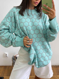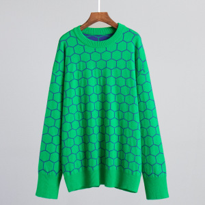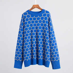 クロスボーダーラウンドネックハニーセーターヨーロッパとアメリカの2025秋冬新作ルーズ気質多用途チェック柄プルオーバーラウンドネックセーター
