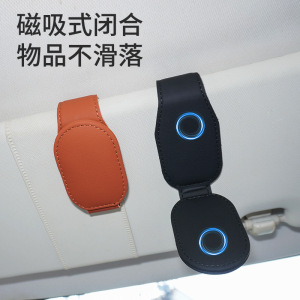 多功能车载眼镜夹汽车眼镜架皮革车内遮阳板收纳盒车用墨镜夹卡夹