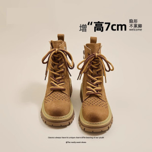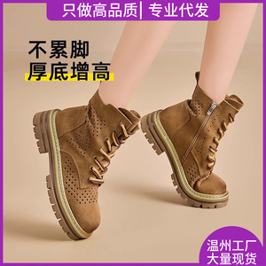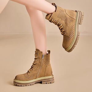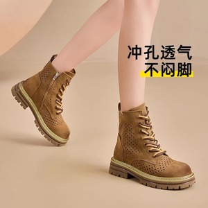 春夏の女性用中空インナー高さマーティンブーツ、薄型通気性厚底本革英国スタイルの小柄なアウトドアワークブーツ