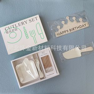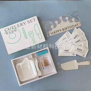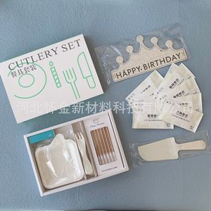 高級誕生日ケーキプレートカトラリーセット使い捨て食器ケーキショップデザートパーティーカトラリー引き出しギフトボックス