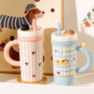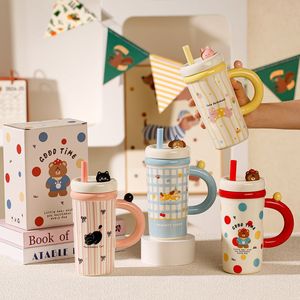 蓋付きの見栄えの良いセラミックカップ、かわいいストローカップ、女性用の大容量家庭用ウォーターカップ、オフィスのかわいいコーヒーカップ