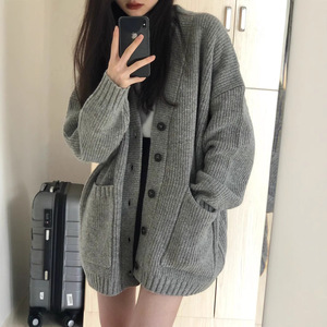 2025 新しいセーター女性のカレッジスタイルカーディガン学生韓国スタイルルーズ V ネック多用途無地ニットジャケットカーディガン