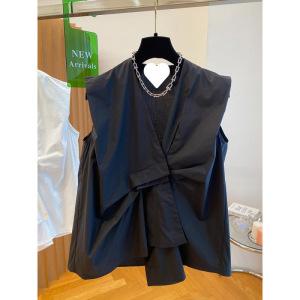 ヨーロッパデザインニッチブルー V ネックシャツ女性のための 2025 新しい夏ルーズでシックなユニークなノースリーブトップ
