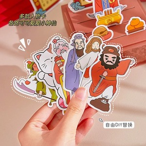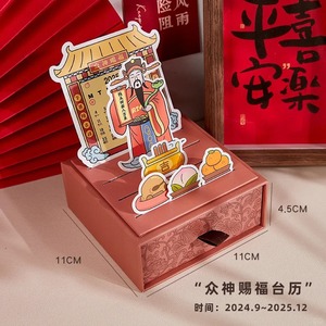 神々が祝福した引き出し型カレンダー、カスタマイズ可能なクリエイティブな収納、富の神様の小さな置物、楽しく高級感のある月間カレンダー