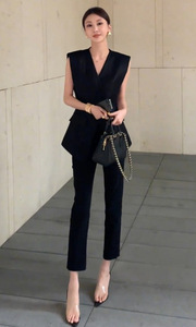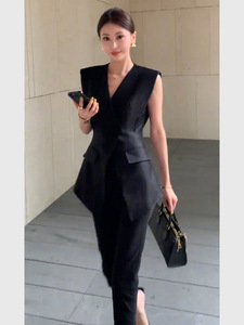 小柄な人向けの夏服、軽い高級感、高級感、フェミニン、スマートで気質のある、超人気のウエストベストスーツのセット
