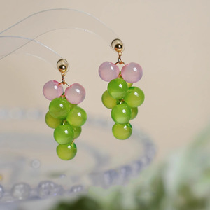 マルベリーパープルとオリーブグリーンのグレープイヤリング