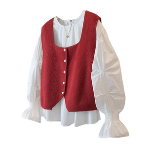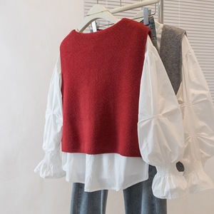 春秋季新款百搭时尚洋气别致设计感针织衫无袖叠穿单件马甲上衣女