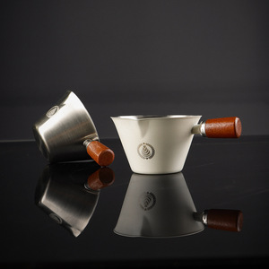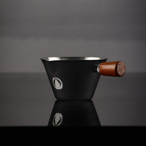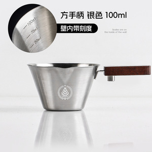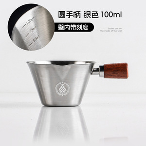ウォールナットハンドルエスプレッソ計量カップステンレス鋼スケール付き小さなミルクカップコーヒー液体抽出カップ