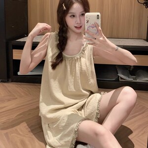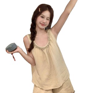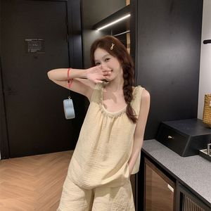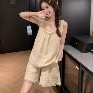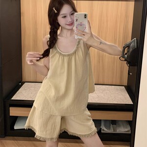 サスペンダーパジャマ夏の新しいショートパンツシンプルな無地タッセルホームウェア薄手のスーツは屋外で着用できます