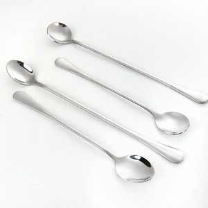 ステンレス鋼アイスピップラウンドスプーンホームロングハンドルミキシングスプーンカクテルバーテンダースティックデザートスプーンコーヒースプーン