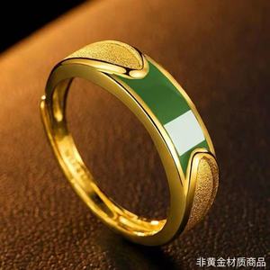 男性と女性のための高模造サンドゴールドリング、サンドゴールドに緑の翡翠を象嵌、甘い気質、若いリングの開口部は調整可能