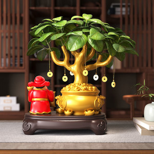 新しい富の神デスクトップ装飾品ショップレジオフィスフロントデスク金のなる木宝の穀装飾品オープン∑