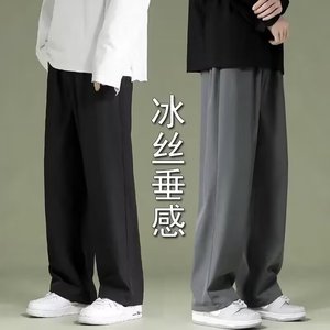 夏のアイスシルク速乾性カジュアルパンツメンズ多用途ワイドレッグパンツ多用途薄型トレンディなドレープストレートパンツ