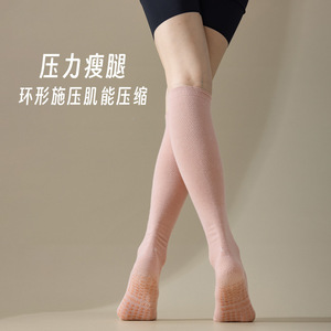ヨガソックスプロフェッショナルノンスリップカーフソックス女性用フィットネスダンス圧力ロングチューブピラティススポーツ筋肉ミッドチューブソックス