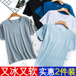 アイスシルク半袖メンズ 2025 新しいトレンディな Tシャツルーズ韓国スタイル夏薄いカラーボトリングシャツラウンドネック速乾性